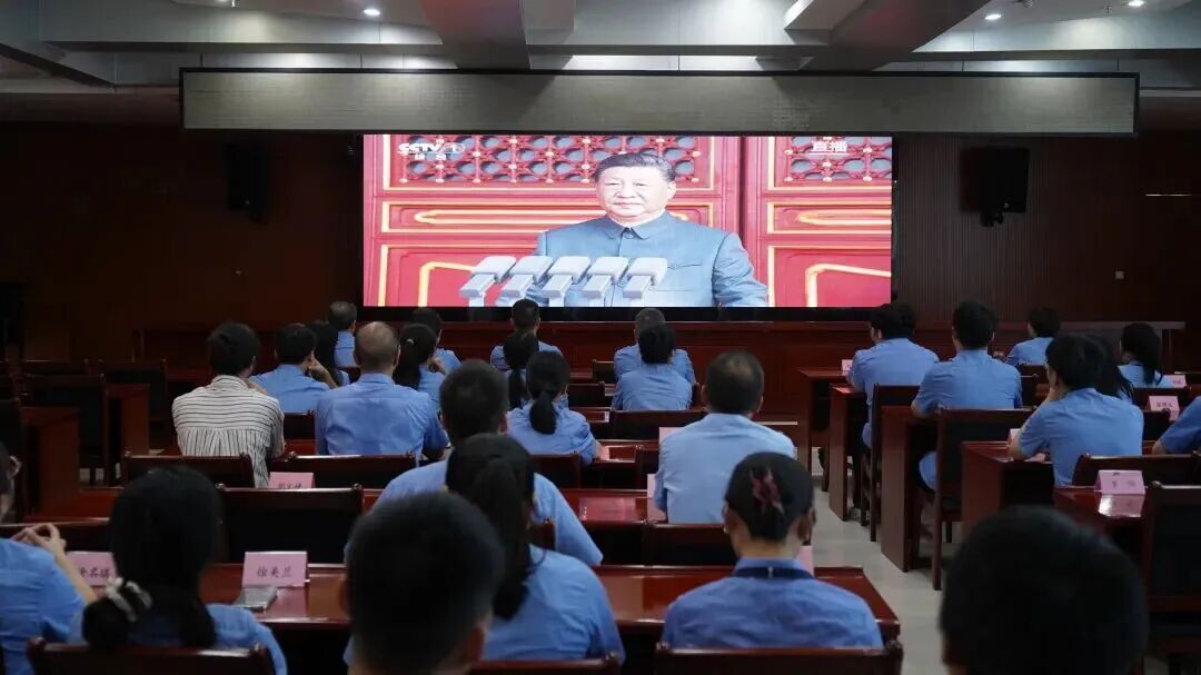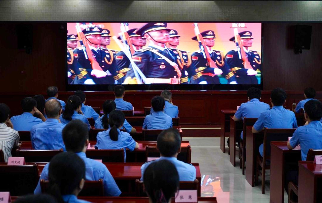 9月3日上午,纪念中国人民抗日战争暨世界反法西斯战争胜利80周年大会在北京天安门广场隆重举行,中共中央总书记、国家主席、中央军委主席习近平发表重要讲话,并举行盛大的阅兵式。渝水区人民检察院组织全体干警集中观看现场直播。